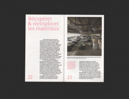 Bellastock m'a contacté pour qu’on réfléchisse ensemble à des supports graphiques permettant de conclure et retracer un long projet de recherche européen autour du réemploi de matériaux dans la construction : FCRBE (Facilitating the Circulation of Reclaimed Materials). Coordonné par Rotor avec Bellastock et d’autres partenaires de plusieurs pays et sur plusieurs années, ce projet a donné lieu à la production de nombreux outils, études et expérimentations, qu’il s’agissait de promouvoir à travers ces supports. Ils ont pris la forme d’un livret qui reprend l’historique et la démarche du projet, et de deux posters dépliants.